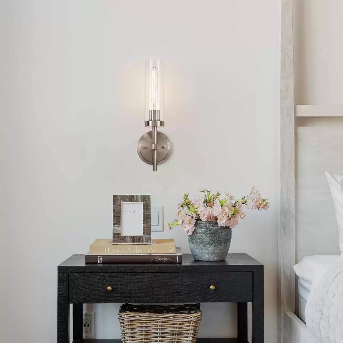 Blending vintage character with modern simplicity, this wall-mounted light is designed to bring warmth and structure into any space. Its refined glass shade softens the light, creating a balanced glow that enhances both function and atmosphere.